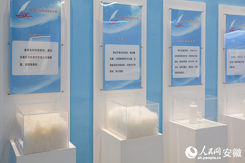第二站,记者走进位于六安经济技术开发区的六安市海洋羽毛有限公司。展厅内,各类羽绒新产品,琳琅满目。