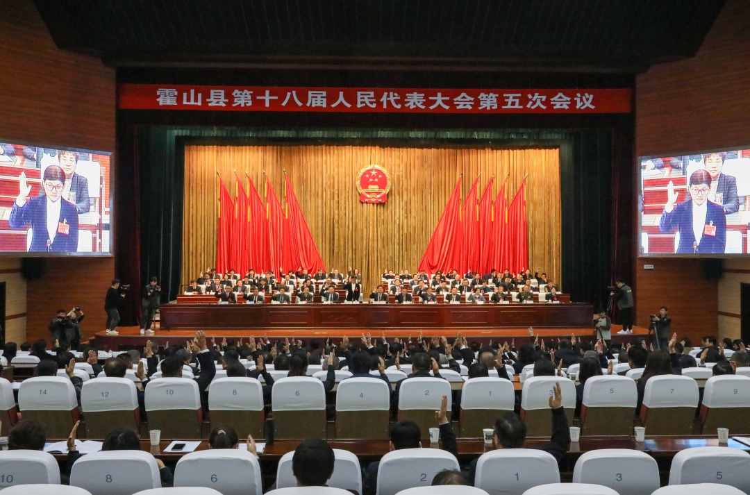 大会以举手表决方式通过总监票人、监票人名单;以无记名投票方式,依法选举刘瀚宇为霍山县人民政府县长,仇多弟为霍山县第十八届人民代表大会常务委员会副主任,石爱武、李铁、吴义云、汪文、郑凤琴为霍山县第十八届人民代表大会常务委员会委员,赵光华为霍山县人民法院院长。新当选人员与代表见面,并进行宪法宣誓。