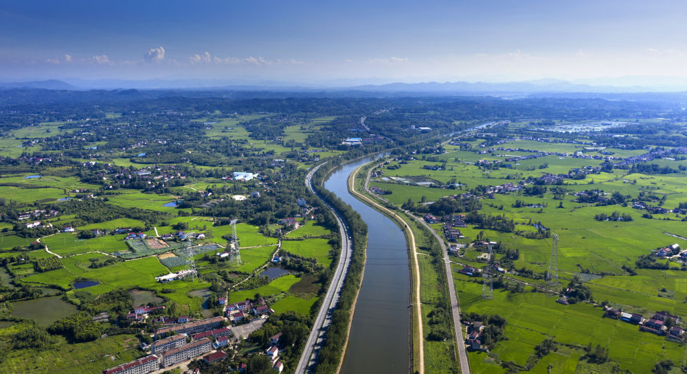 ↑8月3日拍摄的位于安徽省六安市裕安区苏埠镇的淠河总干渠(无人机照片)。新华社发(蒋常虹摄)   横跨长江、淮河两大流域的淠史杭水利工程,是淠河、史河、杭埠河三个毗邻灌区工程的总称,于1958年8月开工建设,是以防洪、灌溉、城乡供水为主,兼有水力发电、生态补水、水产养殖、水利旅游等综合功能的特大型水利工程。   淠史杭工程上引6座大型水库之水,下连1200多座中小型水库和21万座塘坝,形成了蓄、引、提相结合的“长藤结瓜”式灌排体系,有效灌溉面积1060万亩,惠及皖豫2省4市17个县区。