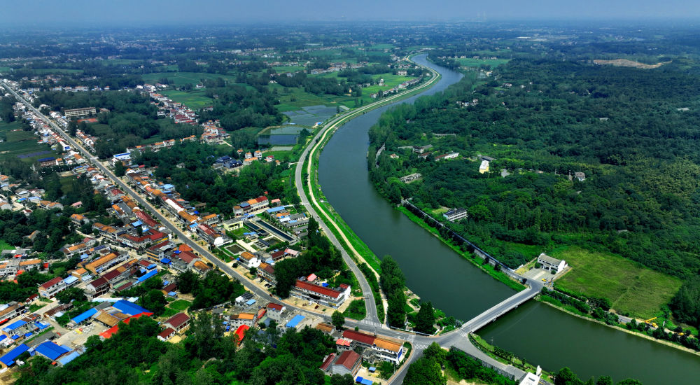 ↑8月18日拍摄的位于安徽省六安市裕安区的淠河总干渠(无人机照片)。新华社发(陈力摄)