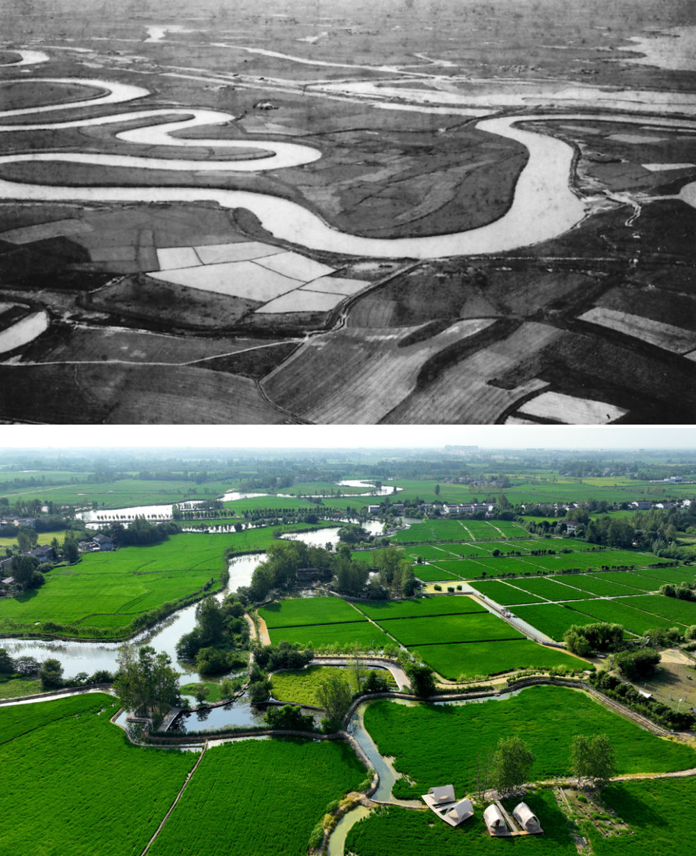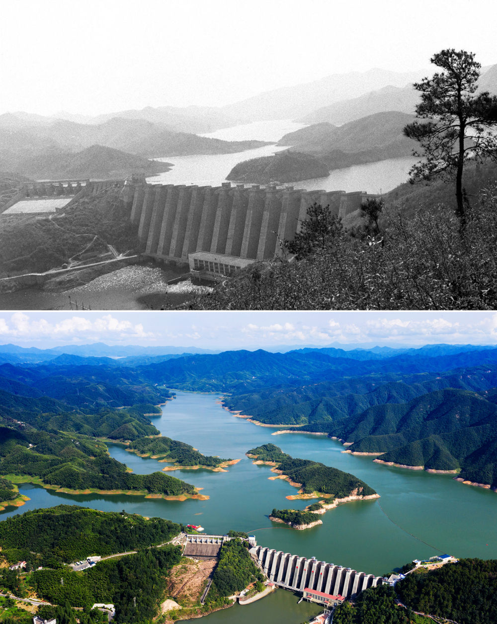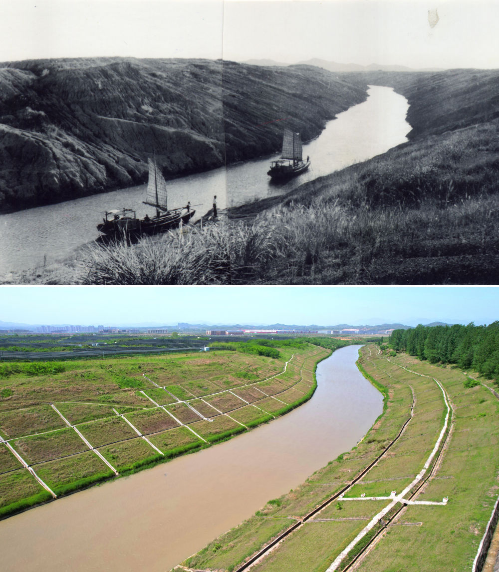 ↑这是一张拼版照片。上图为:1964年拍摄的位于安徽省六安市叶集区平岗街道的史河总干渠(新华社发 田准摄);下图为:2023年4月23日拍摄的史河总干渠(新华社发 彭松摄)。新华社发