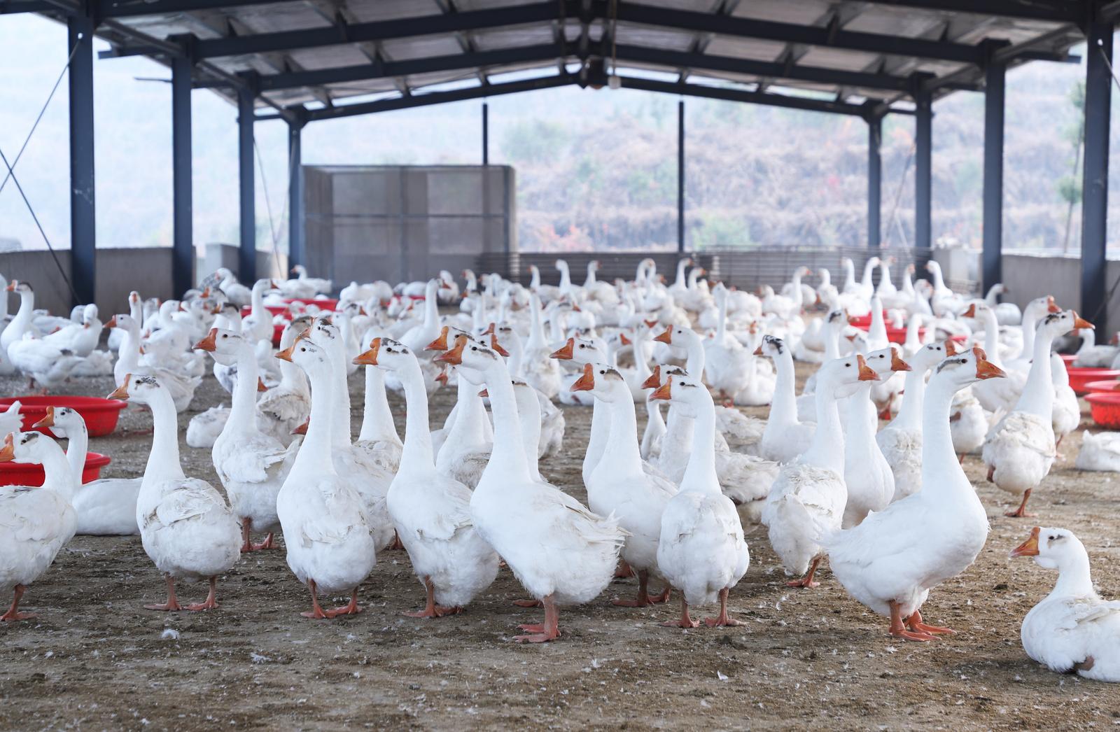 淼琳家庭农场养殖的皖西白鹅。 陆瑶池 摄