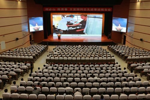 9月16日,何必山、陈贵春、王宜国同志首场先进事迹报告会在县政府会议中心报告厅举行。省委宣传部副部长、省文明办主任贺懋燮,市委常委、宣传部长何颖,市委常委、组织部长张日升及省市委宣传部、组织部相关部门领导,县领导李中华、孙瑞荣、李玉武、项跃文、许海东、杨春辉、尹如江、曹君、刘明传、朱卫东、朱如清、李燕、郑为鹏、谢明、华心扬、储诒权、张润之、周基潮、万直民、陈红、郭群英、彭光存等到会指导,县直各单位副科级以上干部,各乡镇、开发区党政主要负责人及宣传委员、组织委员,各村、社区党支部书记与离退休处级以上老干部等1000余人聆听了报告会。