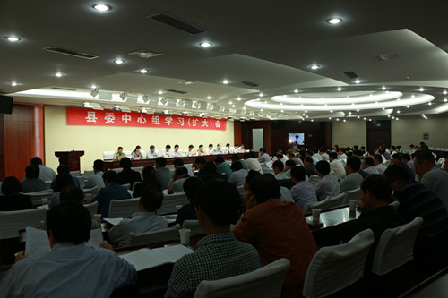 县委副书记、县长李中华主持会议。县委副书记项跃文领学了习近平总书记在中共中央政治局第26次集体学习时重要讲话以及《省委省政府关于加快调结构转方式促升级行动计划》文件精神;县人大常委会主任孙瑞荣领学了近期省委人大工作会议精神;县政协主席李玉武领学了近期全国地方政协工作经验交流会议精神。