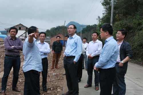 毕小彬一行实地查看了衡山镇上元街村淘宝服务站,详细了解了服务站服务经营范围、方式等;查看了大别山旅游扶贫快速通道龙井冲大桥、铜锣寨隧道等重点路段施工现场,全面了解快速通道霍山段建设情况;查看了诸佛庵镇小堰口、仙人冲水毁工程建设现场,认真听取了灾后重建工作汇报。