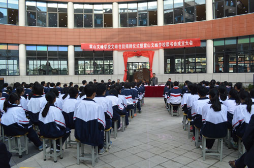 11月3日,霍山文峰学校举行文峰书院揭牌仪式暨文峰学校读书会成立大会。县委宣传部党委书记、副部长陈林、县文广新局局长但修胜、县教育局党组成员李名泉出席了揭牌仪式。