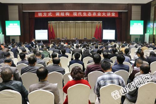 11月6日,霍山县举办转方式、调结构现代生态农业大讲堂活动。县领导项跃文、尹如江、孙勇、陈红,县农业工作领导组成员单位主要负责人,各乡镇政府和经济开发区、高桥湾现代产业园管委会主要负责人、分管农业负责人、农业综合服务站长,农业产业化龙头企业、示范农民专业合作社、家庭农场负责人,蜀皖农业科技发展有限公司、中绿联农产品股份有限公司董事会成员及专家顾问等参加活动。县委副书记项跃文主持大讲堂活动。