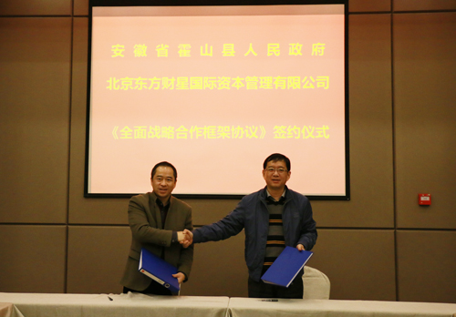 11月17日,霍山县人民政府与北京东方财星国际资本管理有限公司《全面战略合作框架协议》签约仪式正式举行。县委副书记项跃文和副县长孙勇出席签约仪式。