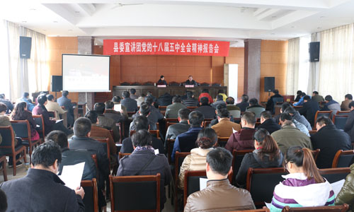 11月27日,县委常委、宣传部长曹君赴诸佛庵镇,为该镇的镇村干部共130余人宣讲党的十八届五中全会精神。