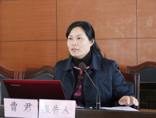曹君结合学习习近平总书记在十八届五中全会上三次重要讲话精神体会,普及了“供给侧改革”、“主体功能区”、“绿色发展”等名词内涵,解读了“十三五”时期的指导思想、基本原则、奋斗目标和重要任务,阐述了创新、协调、绿色、开放、共享五大发展理念的基本内涵和实践要求,说明了《准则》《条例》的主要内容和规定要求。