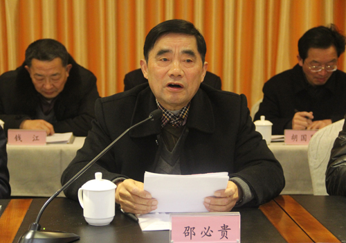 县关工委主任邵必贵在会上传达了习总书记重要指示和中国关工委成立25周年纪念表彰大会盛况,会议还传达了省、市、县领导批示,报告了2015年全县关心下一代工作。