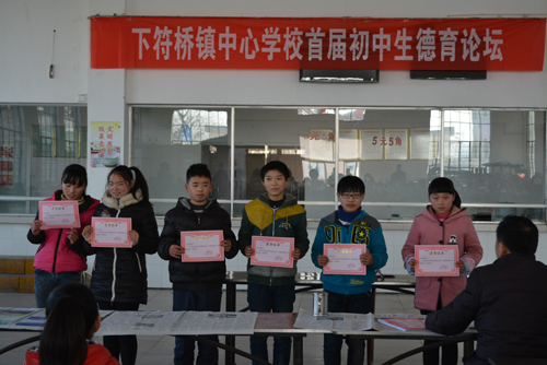 为进一步提高初中生思想道德水平,在新年即将来临之际,2015年12月31日下午,下符桥镇中心学校举办首届初中生德育论坛。
