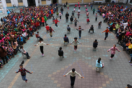 2015年12月22日上午,学校举行了“庆元旦迎新年”美术作品展。参加本次展览的美术作品主题鲜明,创意新颖,内容丰富。国画、素描、线描、色彩等形式多样,这些都是同学们长期积累而凝聚出的优秀作品,充分体现了该校学生朝气蓬勃、健康向上的时代特点,为节日的到来增添了一份靓丽的色彩。 2015年12月30日下午,“庆元旦迎新年”跳绳、拔河比赛在校操场拉开了帷幕。参赛的同学们纷纷使出浑身解数,努力为班级体争光,场下的师生则是高声呐喊,为参赛队员鼓劲加油。2015年12月31日晚上,“庆元旦迎新年”班级联欢会开始了。同学们表演了丰富多彩的节目,歌曲、舞蹈、小品、相声等表演精彩纷呈;诗歌、英语话剧、课本剧也让人耳目一新。每个班级传出的喝彩声此起彼伏,校园内外洋溢着一片欢快的节日气氛。同时老师们也一展才艺,载歌载舞和同学们打成一片。幽默活泼的风格,轻松和谐的气氛,让会前会后笑声不断。此外,学校还组织六年级学生在新年到来之际,给家长或老师写一封信。字里行间,表达了自己对父母和对老师的感恩,从不同的方面阐述了自己对感恩的理解。