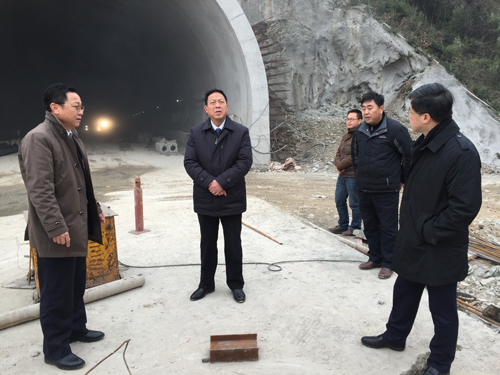 梁国金一行来到省道318牛角冲至黑石渡段公路改造工程南通道项目施工现场,实地查看了隧道、桥梁等项目施工建设,详细了解工程规划建设、施工管理中存在的困难和问题。