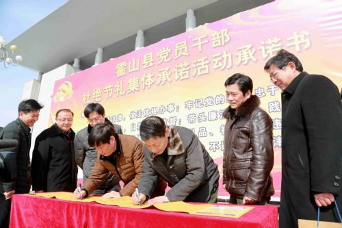 各乡镇党委书记、乡(镇)长,经济开发区、高桥湾现代产业园工委书记、管委会主任,县直各单位、各部门主要负责人,县纪委常委、县委组织部副部长等参加会议,并在杜绝节礼集体承诺活动中签字承诺,“遵守宪法法律,依法依规办事;牢记党的宗旨,忠于党的事业;正确行使权力,自觉接受监督;带头廉洁自律,践行廉政承诺。节日期间,自觉做到拒绝收受礼品、礼金,不违规使用公款相互走访、宴请,不违规使用公车,不违规发放津补贴,干干净净过廉节。”