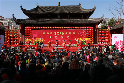 2月16日,霍山县“春节文化周”系列之新春综艺演出首场在文庙开幕,县委常委、宣传部长曹君,副县长孙勇,县政协副主席万直民到场和群众一起观看了演出。