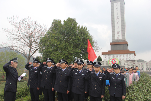 在庄严肃穆的烈士纪念碑前,全体民警列队向革命烈士敬献了花圈、重温了入党誓词。活动中,全体民警还参观了霍山县革命纪念馆、大别山革命史浮雕墙、英烈墙与烈士墓。