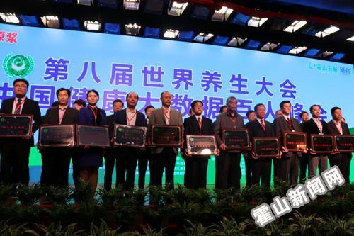 开幕式上还举办了颁奖仪式,第八届世界养生大会授予霍山县为养生宜居县、霍山石斛为健康养生放心品牌、剐水为唯一指定用水、大别山主峰景区和佛子岭风景区为休闲度假养生地。
