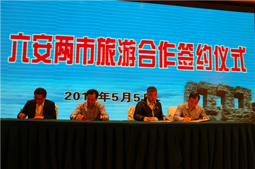 会上,六安市旅游委员会与扬州市旅游局,两地旅游企业代表分别签署了旅游合作协议。同时,还隆重举办了霍山旗舰店入驻阿里银行的上线启动仪式。