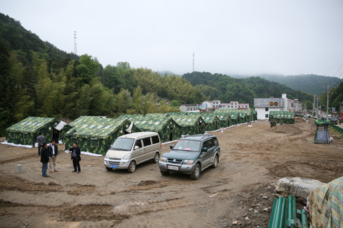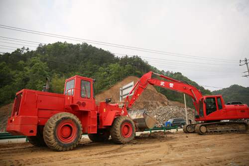 经过七个小时的长途机动,武警交通八支队顺利抵达目的地——安徽省六安市霍山县漫水河镇道士冲村。5月5日15时许,刚刚到达的官兵们就利用挖掘机、推土机、装载机、压路机等大型装备昼夜施工平整土地,紧急开设野战营区。此次任务部队全部采用自给自足的方式完成,不给老区人民带来任何麻烦。