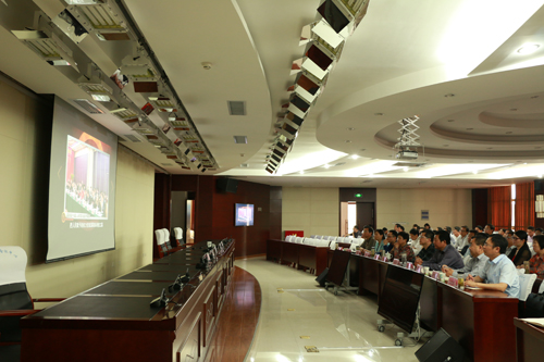 5月18日,县委书记梁国金主持召开县委中心组(扩大)学习会,就学习贯彻习总书记视察安徽重要讲话精神作出强调,并就严守换届纪律开展了专题学习。县四套班子领导、县直单位和乡镇党政正职近200人参加会议。