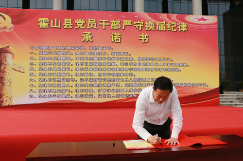 会后,梁国金、项跃文等县领导以及县直单位、乡镇负责同志在会议中心广场,集体签订了《严守换届纪律承诺书》。