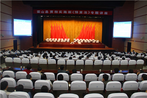 5月20日,霍山县召开贯彻实施新《预算法》专题讲座,市政协副主席、市财政局局长孙学龙作新《预算法》解读专题讲座,县委副书记、县长项跃文主持讲座,并就抓好新《预算法》的学习贯彻提出要求,县领导孙瑞荣、尹如江、周贤林、储诒权、李燕、郑为鹏、谢明、张润之以及县法院院长、县检察院检察长,县人大常委会财经工委、预算工委,县直各预算单位主要负责人及财务负责人,各乡镇党委书记、乡(镇)长,县经济开发区、高桥湾现代产业园工委书记、管委会主任,县财政系统全体人员共400余人参加了讲座。
