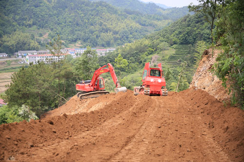 当天,位于霍山县漫水河镇道士冲村朱家岭村路建设工地上人欢马叫,机器轰鸣。广大官兵为了建好老区扶贫道路发扬特别能吃苦、特别能战斗大无畏精神,表现出极大的筑路热情。挖掘机操作手杨成,推土机手曹恒凭借娴熟的驾驭机车的能力全神贯注的投入工作。7中队队长蒋水军,工程师骆智勇,指导员刘世清身先士卒,亲临一线,针对施工中随时出现的技术细节即时作出精准研判,快速反应,指挥若定。有序有力的确保了工程质量与进度。