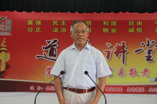 陈明龙在活动中发表了热情洋溢地致辞,他指出,良好的家风家教是中华民族文化的体现,是中华民族道德修养的延续。在离退休干部中开展“传承好家风、弘扬正能量”道德讲堂,搭建了离退休干部思想道德建设新平台,弘扬了社会新风尚,提升了文明道德新水平。陈明龙在致辞中充分肯定了广大老干部、老前辈所作出的历史贡献,同时为广大老干部送上了亲切的祝福,殷切希望广大老干部充分发扬老同志的政治优势、经验优势和威望优势,一如既往地支持县委、县政府的工作,讲好中国故事、传播好声音、发挥正能量,继续为全县经济和社会发展增添正能量。