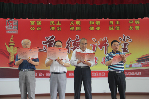 县关工委主任邵必贵、县老教委副主任、县老年大学副校长谭录林与参会人员共同分享了他们幸福美满家庭的故事,他们真诚感人、生动形象的讲述,让与会人员充分品味到家庭美德的魅力,感受到道德和责任的力量,体验到良好家风对做人做事做官的深刻启迪,与会人员深受感动和启发。