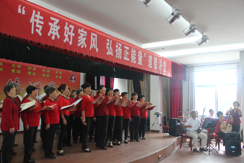 活动还播放了我县自编自拍的廉政宣传片《喜宴》以及安徽桐城《六尺巷》的故事。县老年大学诗词班学员诵读了一段廉政励志诗词,县老年大学戏曲班学员以黄梅戏调演唱了一首《公民道德歌》,充分展示了广大老同志的阳光心态和精神风采。本次道德讲堂还向广大老同志送出了一份吉祥,县文明办负责同志最后作了精彩的点评。整个活动现场气氛活跃,与会人员在视觉和听觉的家庭道德盛宴中接受了心灵的洗礼。