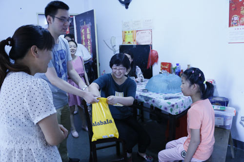6月13日下午,团县委书记汪琴和部分微心愿认领人一行,深入到衡山镇南潭、古城、文峰、西大街等社区,将第一批“微心愿”认领物品一一送到受助贫困学生家中。