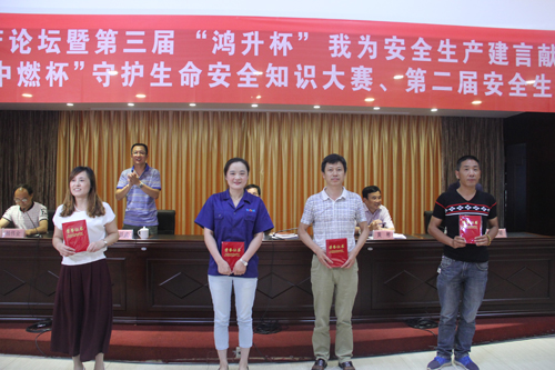 活动宣布了霍山县第六届“鸿升杯”安全生产论坛暨第三届“鸿升杯”我为安全生产建言献策征文评审结果,宣读了《关于表彰霍山县第一届“皖能杯”安全生产知识竞赛优秀组织单位及第一届“中燃杯”守护生命安全知识大赛的通知》、《关于表彰霍山县第六届“鸿升杯”安全生产论坛暨第三届“鸿升杯”我为安全生产建言献策征文优秀组织单位的通知》,《关于表彰全县第15个“安全生产月”活动优秀组织单位的通知》以及《关于授予霍山县安全生产示范岗的通知》,活动最后进行了表彰颁奖。