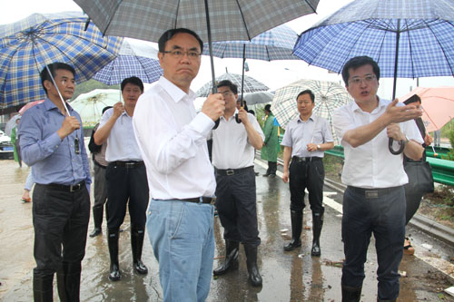毕小彬一行先后深入但家庙镇大河厂村,黑石渡镇朱家畈村曹家冲堤、西冲,落儿岭镇老街、东门冲以及诸佛庵镇小堰口双桥和桃源河村美人沟等雨情、灾情较为严重的乡村,实地查看道路严重积水、滑坡点、水毁工程修复、地质灾害治理工程等现场,并在县防汛抗旱指挥中心对防汛抢险工作进行会商调度。
