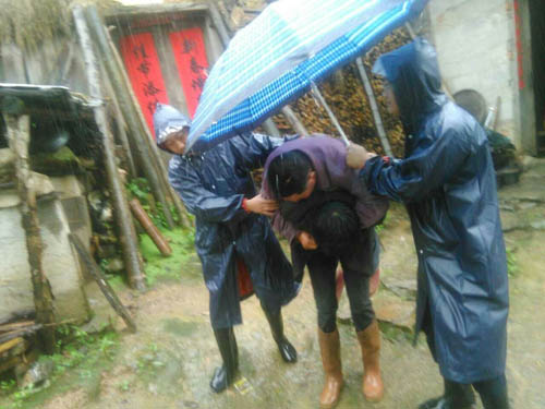 该乡余家畈村水口组低保贫困户胡祥树,74周岁,妻子汪秀枝69周岁,均无劳动力,儿子重度癫痫,瘫痪,一级残疾,生活不能自理,居住在三间土危房中。今天下午14时,该乡党委副书记陈伟、该村第一书记张道乐及村书记杜向荣了解到该户受灾后,第一时间到户采取封门上锁的措施进行紧急转移。据了解,其危房已于当晚21时倒塌,损毁严重。目前该户已妥善安置,情绪稳定,无生命威胁。(谢语)