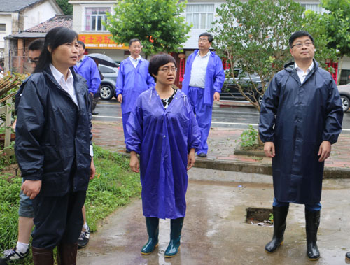 韩军一行深入黑石渡镇朱家畈村查看灾情.