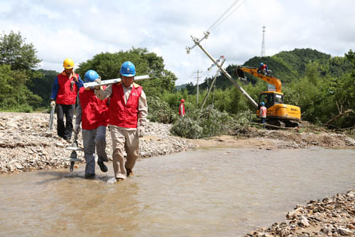 6月30日起连续的暴雨重创霍山,暴雨导致的山洪、内涝给城区和各乡镇造成不同程度损失,也给电网安全运行造成严重影响,国网霍山供电公司先后有1条35千线路和11条10千线路被迫停运,近万户群众用电受到影响。