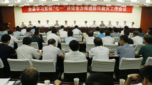 7月7日,全县学习贯彻“七一”讲话全力推进防汛救灾工作会议召开,县领导梁国金、项跃文、李玉武、董永来、尹如江、曹君、周贤林、朱卫东、罗绍明、王光军、陈明龙、储诒权、汪王剑、华心扬、金正开、李燕、郑为鹏、谢明、张润之、孙勇、周基潮、万直民、郭群英参加会议。县委书记梁国金主持会议,并传达了省委书记王学军、省长李锦斌视察霍山防汛工作指示精神。