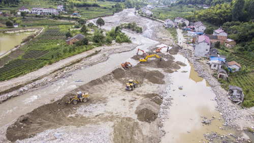 7月2日,灾害发生后,打通生命通道成为首要任务。截至当晚,境内318线、209线、8个村主干道全部打通,确保了抗洪抢险工作的顺利开展。7月3日,镇村干部组织群众开展力所能及的生产自救,做好受灾群众的安抚工作,加快村组道路、电力线路、通信设备的抢修进程,上土市集镇、部分村组恢复了供电、通信。