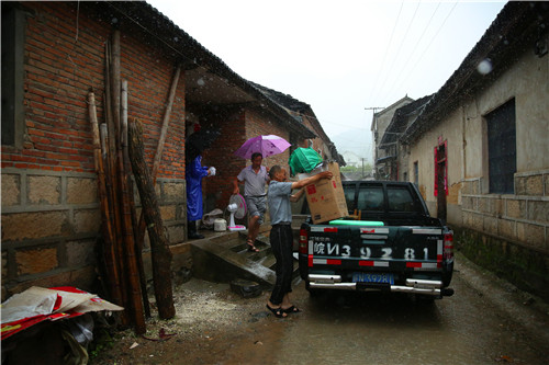 该乡余家畈村水口组低保贫困户胡祥树,74周岁,妻子汪秀枝69周岁,均无劳动力,儿子重度癫痫,瘫痪,一级残疾,生活不能自理,居住在三间土危房中。今天下午14时,该乡扶贫副书记陈伟、该村第一书记张道乐及村书记杜向荣了解到该户受灾后,第一时间到户采取封门上锁的措施进行紧急转移。据了解,其危房已于当晚21时倒塌,损毁严重。目前该户已妥善安置,情绪稳定,无生命威胁。