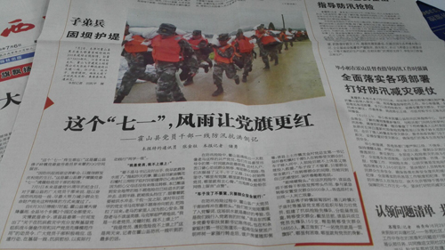 7月1日本来是建党95周年的纪念日,对于霍山县的广大党员干部来说,是以奋战防汛抢险一线、尽最大努力减少群众生命财产损失这种特殊的方式来度过了。