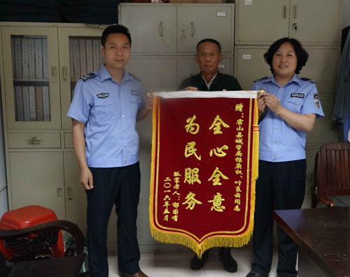 近日,原砖瓦厂退休老职工郁国有来到霍山县城管执法局规划中队,将一面写有“全心全意为民服务”的锦旗送到执法队员手中。