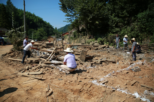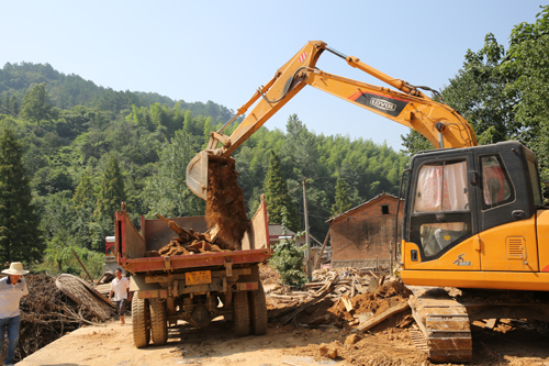 在漫水河镇新铺沟村老街,大型挖掘机、铲车在拆除水毁民房,清运现场的货车穿行在狭窄的街心马路上,烈日炙烤下,轰鸣的机器声伴随滚滚而来的热浪,打破了这个曾经古老而又美丽山村的宁静。据漫水河镇副镇长廖家武介绍,该镇新铺沟老街因“6•30”洪水袭击,20余户民房全部进水,有大半土坯房倒塌,该镇实施“修旧如旧、拆旧还新、扩标升级、凸显特色”的灾后重建方案,对新铺沟老街适时进行改造,同时,在与老街一河之隔的大寨田处新建美丽乡村示范点一处,推动全镇灾后恢复重建和美丽乡村建设同步推进。(文/图刘伟)