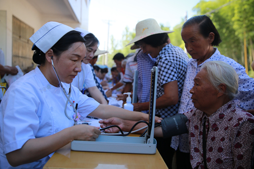服务于民,百姓健康挂心间。在当天义诊现场,村民们扶老携幼,把整个村卫生室围得水泄不通。油坊组现年78岁的朱成英老人一边测量血压,一边告诉记者:“我听说县医院专家今天来给我们做身体检查,一大早就赶到村里来了,刚才医生给我做了B超和心电图,告诉我身体好得很,我一会就给我的儿子和孙子们打电话,告诉他们我的身体很好。”老人还说,现在的医疗和各项政策越来越好,她让孩子们不要太担心老人的身体,在外安心工作。