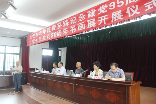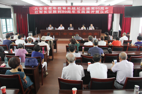 8月23日,六安市老年教育系统纪念建党95周年、红军长征胜利80周年书画展开展仪式在霍山县老干局举行,市老教委常务副主任、市老年大学校长程世龙,市老年大学副校长武莲、县委常委、组织部长王光军,市老教委文艺委员会、县老干局、县老教委、书画展作品作者等相关成员出席仪式。