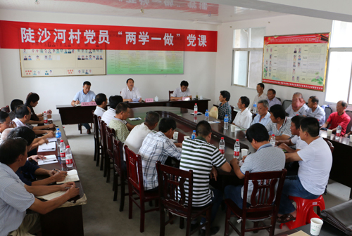 就推进陡沙河村的下一步发展,梁国金要求,村“两委”班子及全体党员要牢记总书记的嘱托,牢记省委书记、省长的要求,牢记人民群众的期盼,争做政治坚定的模范、推动发展的模范、脱贫攻坚的模范、维护稳定的模范、树立新风的模范和清正廉洁的模范,抢抓机遇,鼓足干劲,在陡沙河这片沃土上扎实工作、奋勇争先;要始终把责任记在心头、把担子压在肩上,实干苦干齐心干,心系百姓抓发展,努力争当一名优秀的人民公仆、争做一名优秀的共产党员,为加快绿色崛起、实现全面小康、建设美丽霍山再立新功。