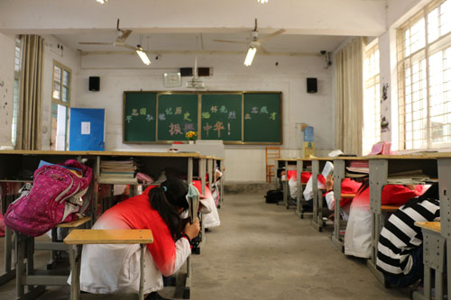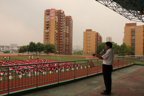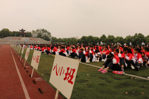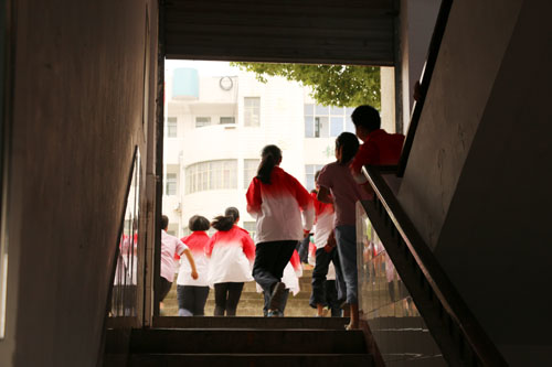 9时18分,在一阵紧急的警报声中,霍山二中近2000名学生紧张有序地按确定的线路疏散到达运动场,双手抱头,蹲下。9时38分,警报解除,全体学生有序撤离回到教室。