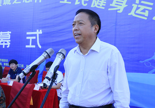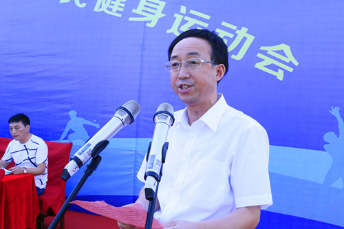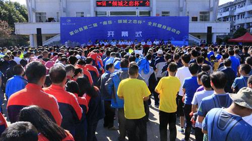 县委书记梁国金宣布霍山县第二届“南岳•倾城之恋杯”全民健身运动会开幕。