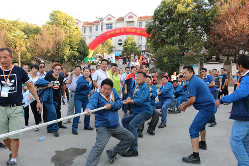 开幕式结束后,拔河比赛在一片呐喊助威声中正式开始,经过激烈的角逐,来自迎驾集团和应流集团的拔河队伍分别获得女子、男子拔河冠军。