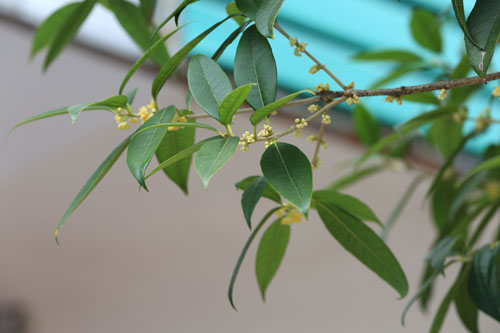 漫步九月的漫水河镇街道,一排排盛开的丹桂在马路两旁整齐的排列开来,一簇簇金色的花蕊在阳光的照耀下,散发出诱人的清香。清风拂过,大地中一片金色熠熠,绿叶婆娑。绰约的枝干临风弄影,默默灿烂着这片红色的土地,点缀着这一方天空。